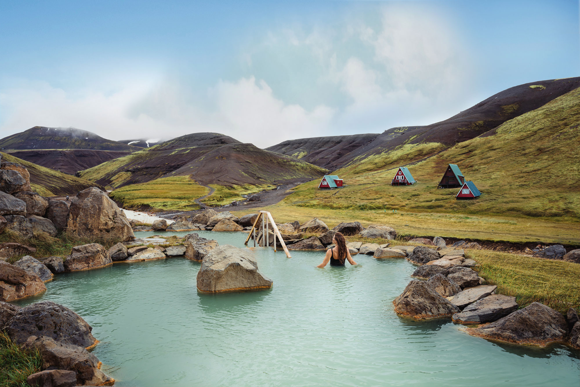 Vatnið í Hálendisböðunum er ölkelduvatn sem á upptök sín neðanjarðar, við nærliggjandi háhitasvæði.
